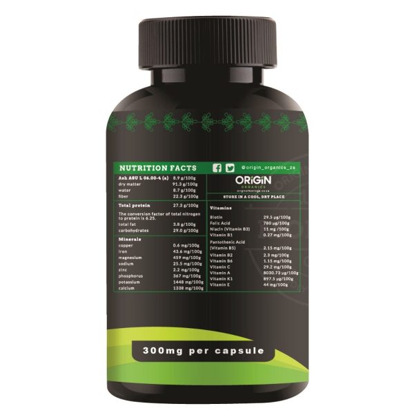100% Natural, Pure, Organic Dry Leaf Moringa Powder in Vegan Capsules. Moringa capsules are easy to ingest, containing 300 mg of all natural Moringa Oleifera.